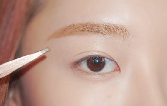 先用眉毛膏给眉毛上色,然后 用浅棕色画一字眉,打造自然眉型。