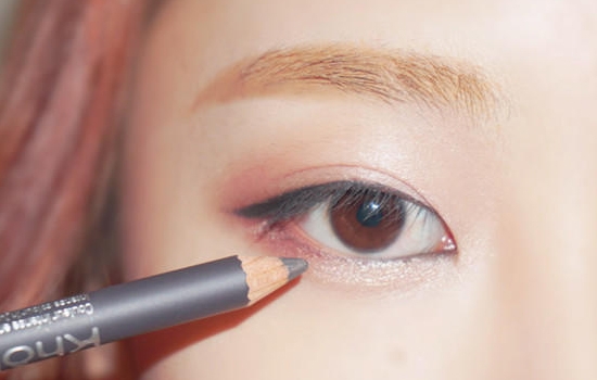 用木炭色眼线笔用一种填满睫毛间隙的感觉描一下眼线,至尾部时不必向上拉长,可以稍微往下一些;下眼线从眼头开始,描至三分之一处即可。