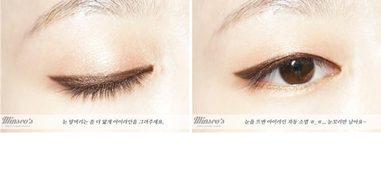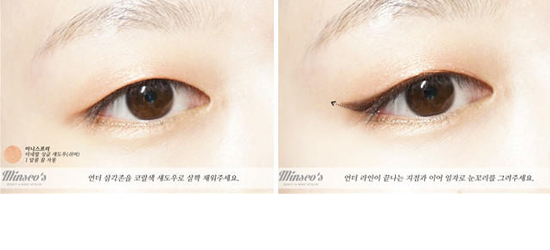 STEP6:最后沿着上眼睑把眼线描画至眼头,并适当加粗。