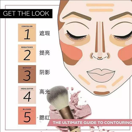 今年彩妆和时尚界对于高光的使用更加重视,对于期待妆效更加自然的人来说,使用好高光或许也比阴影来的更重要一些。高光的让应该饱满的部位视觉上看起来更加饱满,不仅使皮肤看起来水duangduang,也有一定的减龄效果。高光使用的范围如上图所示,全部都是我们面部最为突出或饱满的部位,额头、鼻梁、眉骨、苹果肌、唇珠上方、下巴。