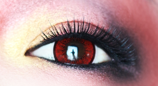 夹翘睫毛后,粘贴上卷翘的假睫毛。