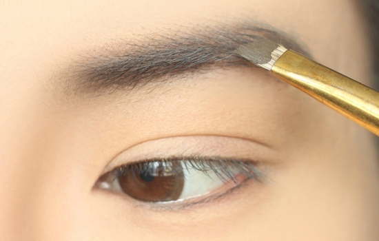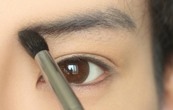 用圆刷沾眉粉先把眉头晕染一下,避免画出方方正正的眉毛。