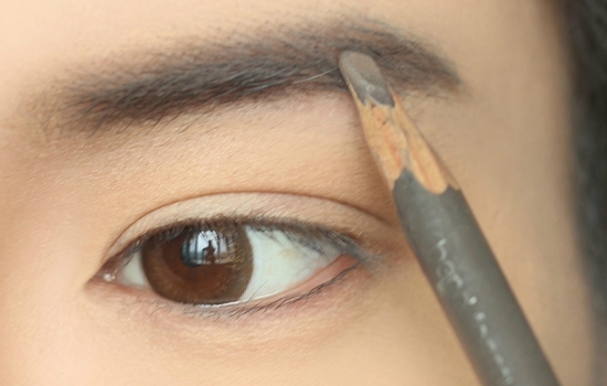 用眉笔勾出眉形,男士的眉毛一定要有眉峰哈!