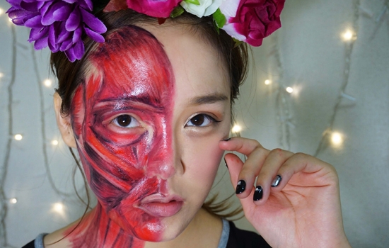 半颜妆源自于日本的一个妆容,传统版是一半妆容一半素颜,本次小编带来的教程是一半正常妆容,一半是万圣节使用的肌肉妆。下面和小编一起看看吧!