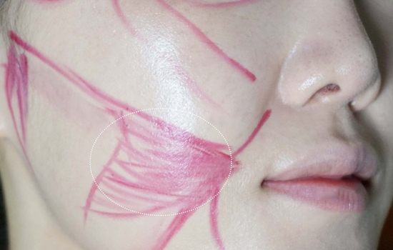 第四步:接下来另一块面部肌肉纹理走向不一样,可以参考肌肉分布图。