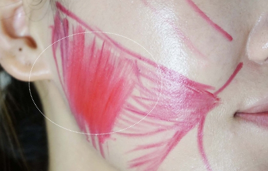 第五步:大笔刷沾取口红大面积刷在肌肉块中间。