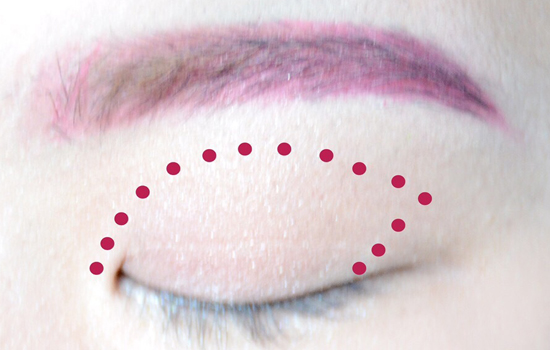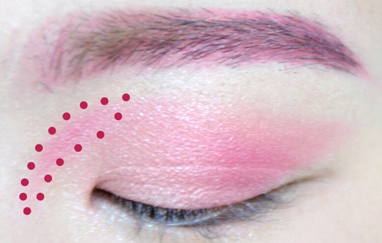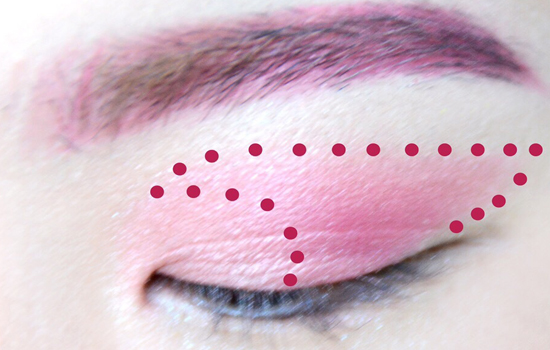 第三步:用锥形刷按照图中标出的形状画出眼影,周围略微晕染。