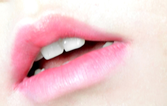 第九步:用粉底液或遮瑕液遮去唇色,涂上粉色系的唇膏,涂在唇部中间一点点,晕开即可。