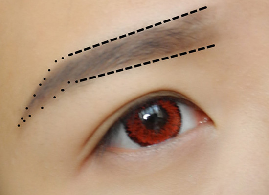 第一步:画一个比较有英气的眉毛,粗一点,有一点眉峰,但总体还是平眉的眉毛,眉头不画,用刷子晕染一些即可。
