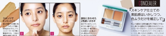 STEP2:根据不同位置,使用深浅不同的遮瑕膏,调整肌肤色差,用海绵晕开。