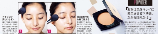 STEP3:用散粉叠擦眼部周围,眉毛周围也要涂抹,提亮眼周。