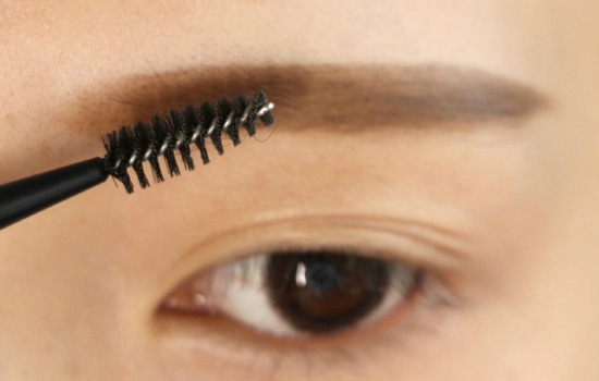 第五步:拿一把干净的眉刷,将前端刷的自然一点,淡点。