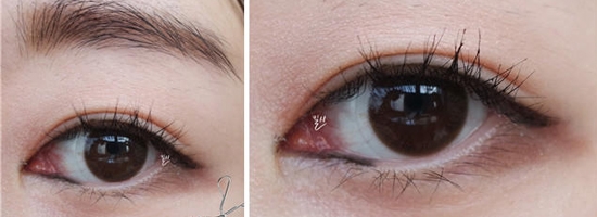 STEP6:用睫毛夹夹一下睫毛后,涂抹黑色睫毛膏。