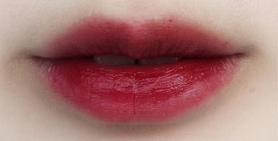 STEP7:用暗红色唇膏涂满整个唇部。