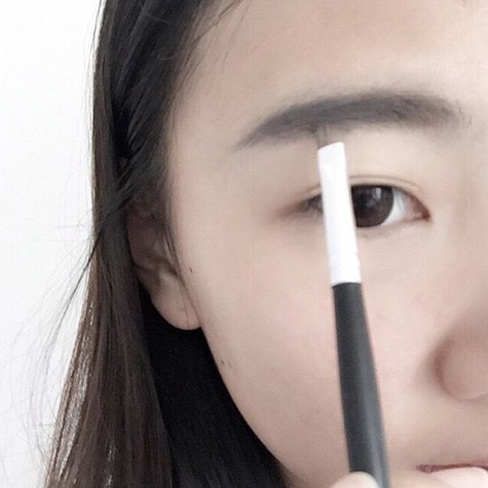 第二步:再用斜头的刷子,刷均匀。注意眉头不要画,用刷子晕染即可,画眉时下手不要太重。