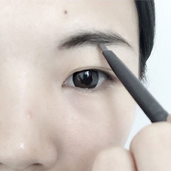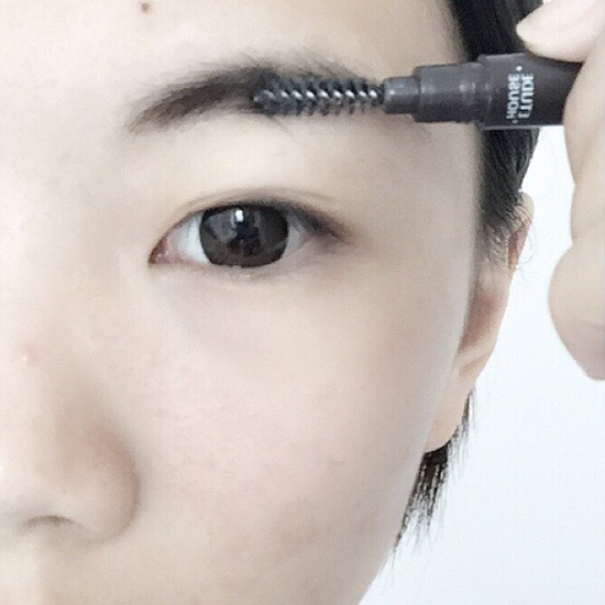 第三步:画完了,用螺旋刷将眉刷刷均匀,选择棕色眉笔的妹子,如果本身眉毛颜色太深,可以选择棕色的染眉膏哈。