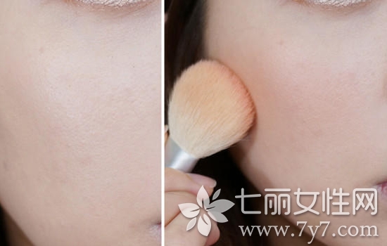STEP9:用腮红刷蘸取适量橙色腮红,轻轻拍打在颧骨前半部分。