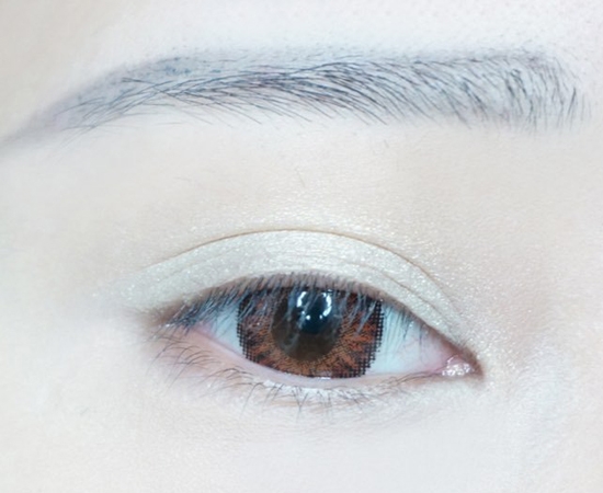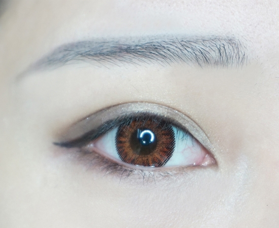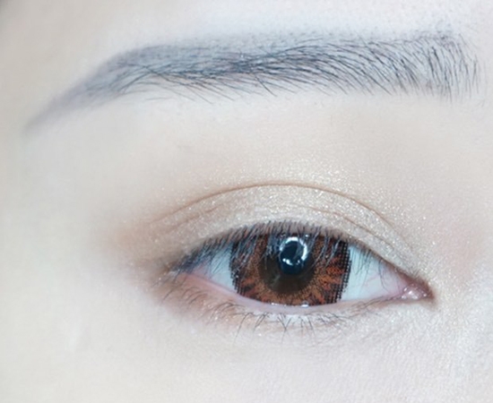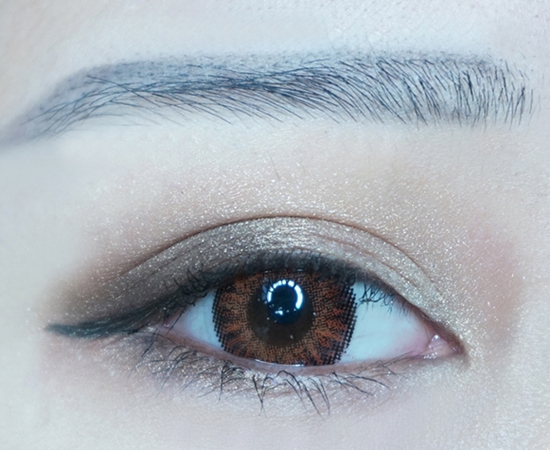 第二步:使用浅棕色哑光眼影,从上眼皮眼尾开始晕染,带过下眼尾。
