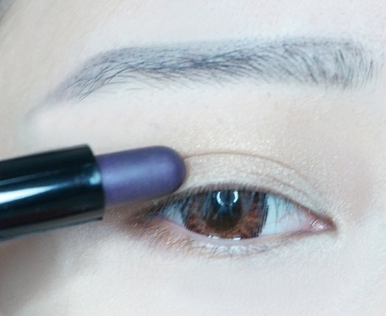 第三步:使用单色眼影笔深紫色加强眼尾,自然晕染,同时也不要忘记带过下眼尾哦~