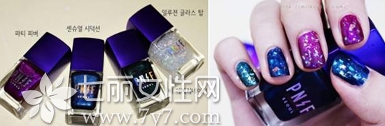 除了脸部彩妆,这次pony还一起推出了指甲油,蓝色、紫色等深色中带有闪片款式,同样在秋冬十分受欢迎。