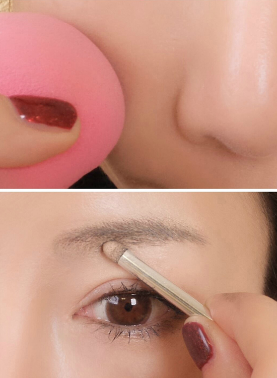 第一步:石原里美在剧中的肤色不是特别白,中和一点深色粉底液,全脸涂抹RMK粉底,用遮瑕膏遮盖瑕疵,并遮盖眉毛的下侧,这也让眉毛显得轻柔。