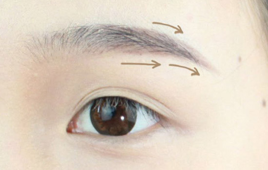 第二步:然后再用眉粉将其余部分填上,取浅色与中间色混合填满,注意刷自然哈。