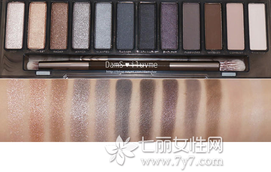 共有12个颜色,主要以比较适合烟熏妆的暗色调为主,当然也有适合做阴影和高光的颜色。