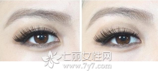 STEP12:夹翘睫毛,粘上末端较长的夸张款假睫毛。