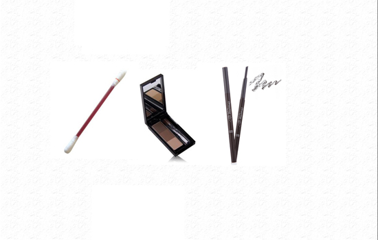 KATE三色眉粉,可以用作鼻影哦。爱丽小屋眉笔,看到型的更好描绘眉形,另一边附带眉刷。棉棒,用来沾取遮瑕膏或粉底,画错时及时进行修正。