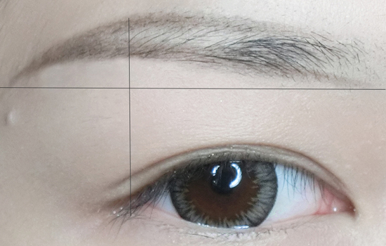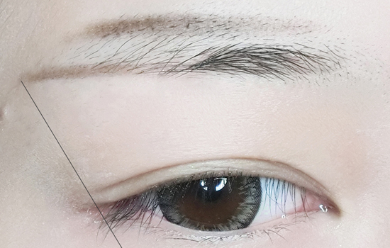 第一步:平直眉并不是没有任何弧度,眉头眉尾在一条平行线上,眉峰与眼角呈垂直线。使用眉笔画出平直眉的框架出来。