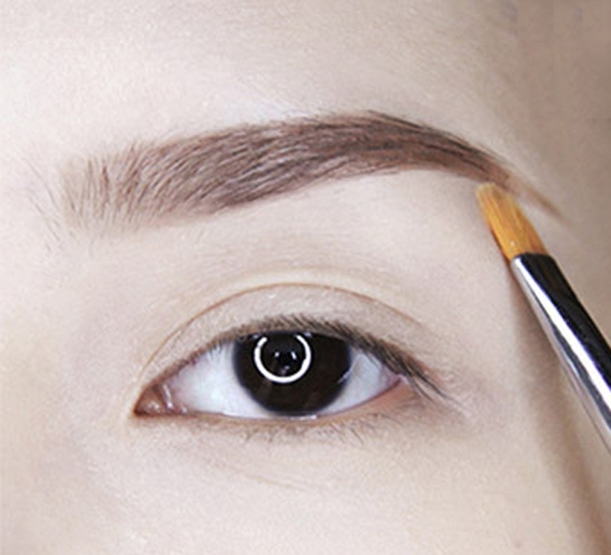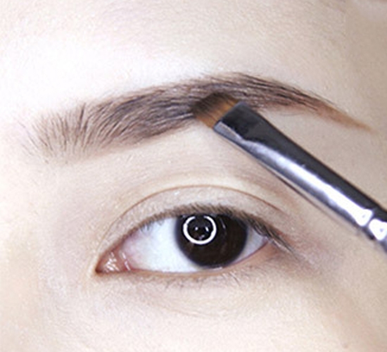 第七步:用刚刚使用的眼影继续填充眉毛,记得眉头画浅一点,眉尾画深一些。这里使用的眼影是爱丽小屋单色眼影BR402号色。