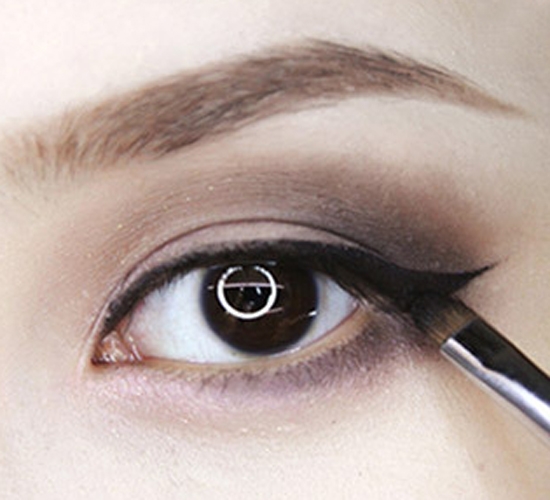 第十二步:用重点眼线刷沾取深色带珠光眼影涂下眼线处,宽度大概3-4毫米,这里使用的眼影是CLIO单色眼影P25号色。