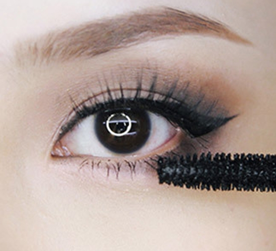 第十五步:用魔法森林的黑色眼线膏画内眼线,先画前面,然后自然地往后画。睫毛根部和后面都要画到,拉长眼尾眼线并向上翘。