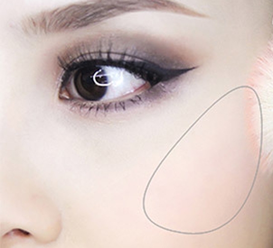第十八步:用刷子沾取谜尚CR04号粉色腮红涂在苹果肌上。
