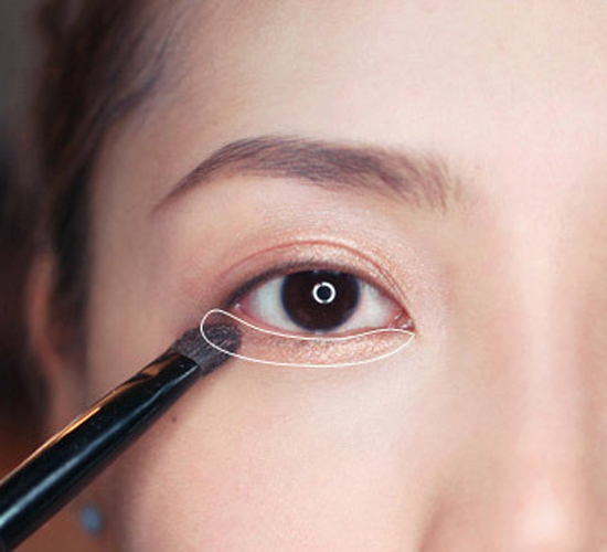 第三步:选择刚使用的眼影涂在下眼线位置处,大概5mm左右。