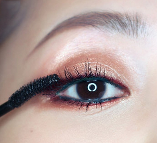 第十三步:选择防水防晕染的睫毛膏刷上下睫毛,为了更表现出睫毛,我用睫毛膏刷三次。这里使用的是KISS ME纤长睫毛膏黑色。