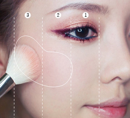 第一步:选择没有住过的腮红刷在脸上,将脸部分为三部分,将腮红刷在2/3处就行了。这里使用的腮红是VDL的季节腮红102号。