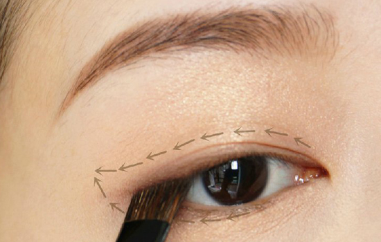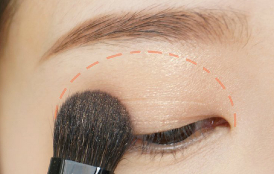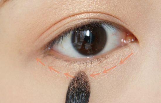 第四步:竹宝堂灰鼠毛Z6平头眼影刷取深色眼影晕染在双眼皮褶皱内,下眼尾后半段也要带上哈。
