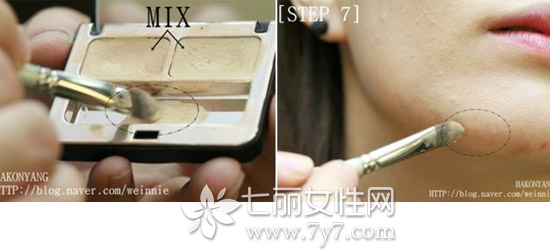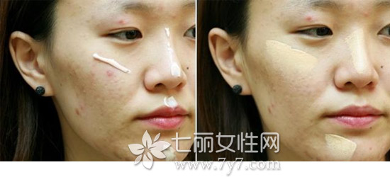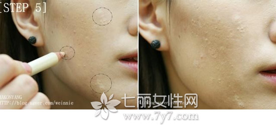 STEP5:对于特别深的痘印,可以再用遮瑕膏,颜色根据自己的肤色,可以深浅调配着用。