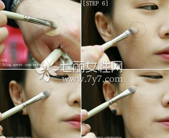 STEP4:用粉底一起把遮瑕膏涂开,可以借助遮瑕刷,使用效果会更加好。