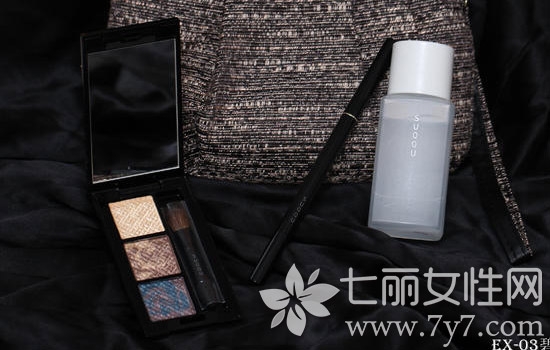 suqqu圣诞套装!三色眼影,EX-03碧茶织,ex-04紫苏织。分AB两个套装,套装包括眼影一盒,眼线笔一支,眼唇卸妆50ml,化妆包一只。眼影和眼线都是限定色,10月25日开始预约,11月1日发售。我要买买买!