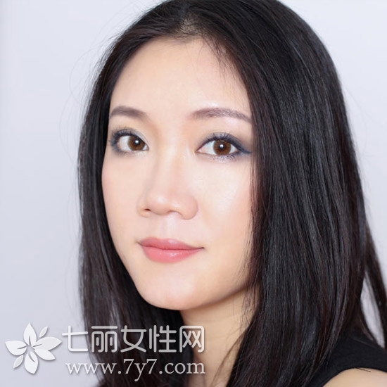 STEP7:用眼线笔画出上眼线,眼尾自然下垂;