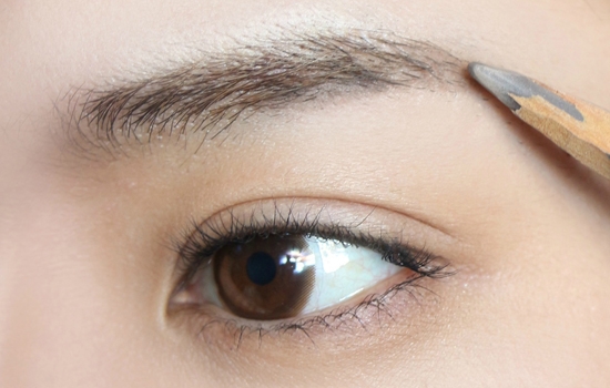 第七步:用松散的刷子沾眉粉轻轻地把眉毛过渡一下,把眉笔削尖,用一根根的画法,把眉毛空隙补上,在眉尾的位置补几根就行。