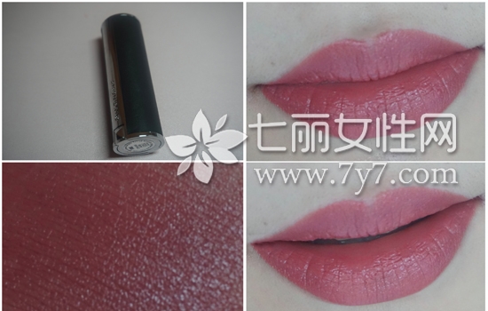 这支颜色很好看,属于气质型,经典的口红质地,显色,也比较滋润,不会粘头发,但味道真的有点人工,闻久了头晕,质地不算哑光,但不会太闪。
