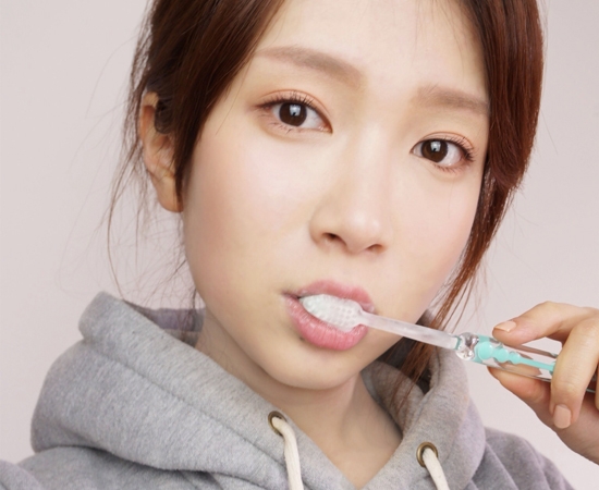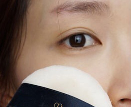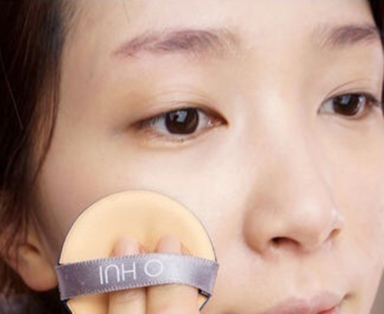 第一步:韩剧中的底妆十分清透白皙,所以我们先用气垫霜按压全脸,制造出韩剧中的光泽肌!这里使用的气垫粉底是欧惠的气垫BB哈。