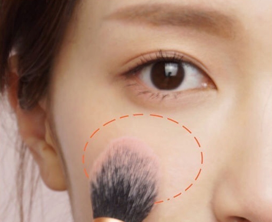 第四步:将粉色和紫色腮红混合刷在眼下部位,这里使用的腮红是coosei腮红的03和07号色。