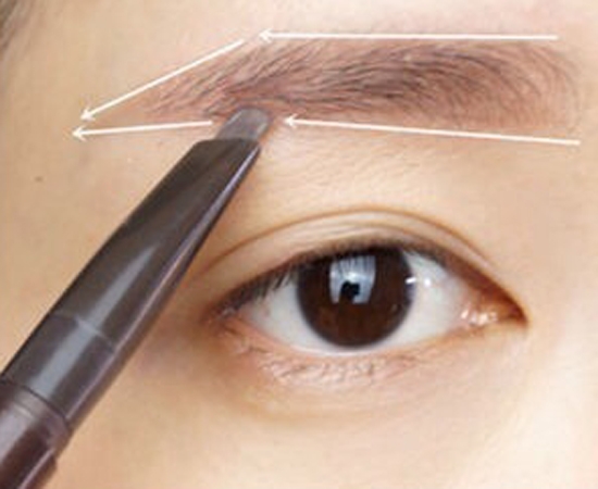 第五步:眉笔先勾勒眉毛的眉形,眉色要浅一些,并且要短一些,并且用染眉膏刷均匀上色。这里使用的产品是爱丽小屋眉笔02号色及kiss me染眉膏03。