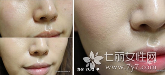 最后在脸上也涂了一些,脸上的毛孔、黑头、红血丝等都被遮住,肤色提亮了不少,看上去干净透明。保湿的同时,还不油腻,使用感非常好。