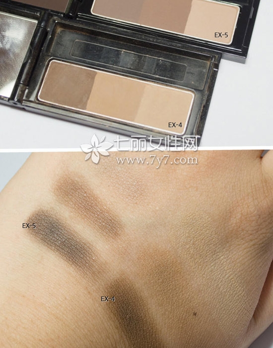这款三色眉粉共有两个色号,分别是EX-4浅棕色、EX-5深棕色系;