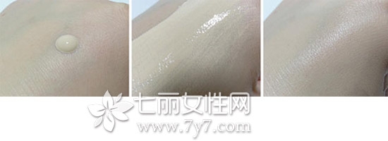 指尖测试能看出粉底液是滋润保湿型的,稍微带点粘稠度,能让肌肤更加滋润、服帖。
